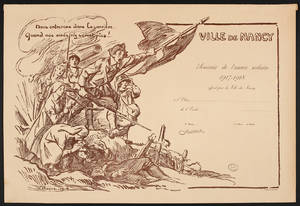 Souvenir de l'année scolaire 1917-1918, offert par la ville [aux élèves des écoles] : Nous entrerons dans la carrière quand nos ainés n'y seront plus ! / V. Prouvé. • 1918 Voir dans l'inventaire Ajout à votre panier