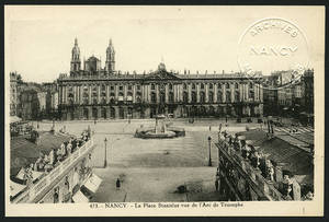 Place Stanislas vue de l'Arc de Triomphe. S. d., vers 1923-1935. Noir et blanc. Edition d'Art V. Roeder, Nancy. Même cliché que 106 Fi 39 et 48. • 1923-1935 Voir dans l'inventaire Ajout à votre panier