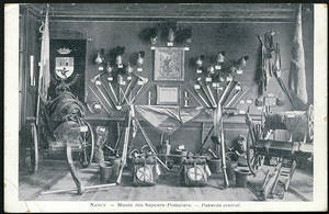 Cartes postales de Nancy Art et culture Musées Musée des sapeurs-pompiers Panneau central. – Vers 1904-1916. – 1916 (correspondance). – Noir et blanc. – Même cliché que 106 Fi 458. • 1904-1916 Voir dans l'inventaire Ajout à votre panier Tweet Scoop.it Description Documents Ajouter un commentaire Date de l'unité documentaire 1904-1916 Statut juridique Archives de statut juridique mixte (6 Fi, origine publique ; 106 Fi, origine privée). Descripteurs Grand domaine de recherche : Collections iconographiques Sujet : musée Type : carte postale Cotes extrêmes : 106 Fi 457 Documents relatifsImages