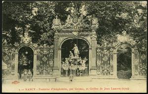 Fontaine d'Amphitrite par Guibal et Cyfflé, et Grilles de Jean Lamour (1755). – Vers 1903-1916. – Noir et blanc. – Royer et Cie phot., Nancy. – Même cliché que 106 Fi 645, 646. • 1903-1916 Voir dans l'inventaire Ajout à votre panier