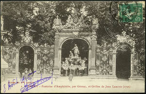 Fontaine d'Amphitrite par Guibal, et Grilles de Jean Lamour (1755). – 1916. – Noir et blanc. – Royer et Cie, Nancy. – Même cliché que 106 Fi 623, 646. • 1903-1916 Voir dans l'inventaire Ajout à votre panier