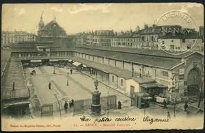 Cartes postales de Nancy Commerces et services Marché Marché couvert. – Vers 1891-1903. – 1906 (oblitération). – Noir et blanc. – Maisons des Magasins Réunis, édit., Nancy. – Même cliché que 106 Fi 1171. • 1891-1903 Voir dans l'inventaire Ajout à votre panier Tweet Scoop.it Description Documents Ajouter un commentaire Date de l'unité documentaire 1891-1903 Statut juridique Archives de statut juridique mixte (6 Fi, origine publique ; 106 Fi, origine privée). Descripteurs Grand domaine de recherche : Collections iconographiques Sujet : commerce Type : carte postale Cotes extrêmes : 106 Fi 1170 Documents relatifsImages