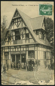 Pavillon des postes, télégraphe, téléphone. – Vers 1909. – 1909 (oblitération). – Noir et blanc. – Imprimeries Réunies, Nancy. – Même cliché que 106 Fi 1459, 1461, 1462, 1463. • 1909 Voir dans l'inventaire Ajout à votre panier